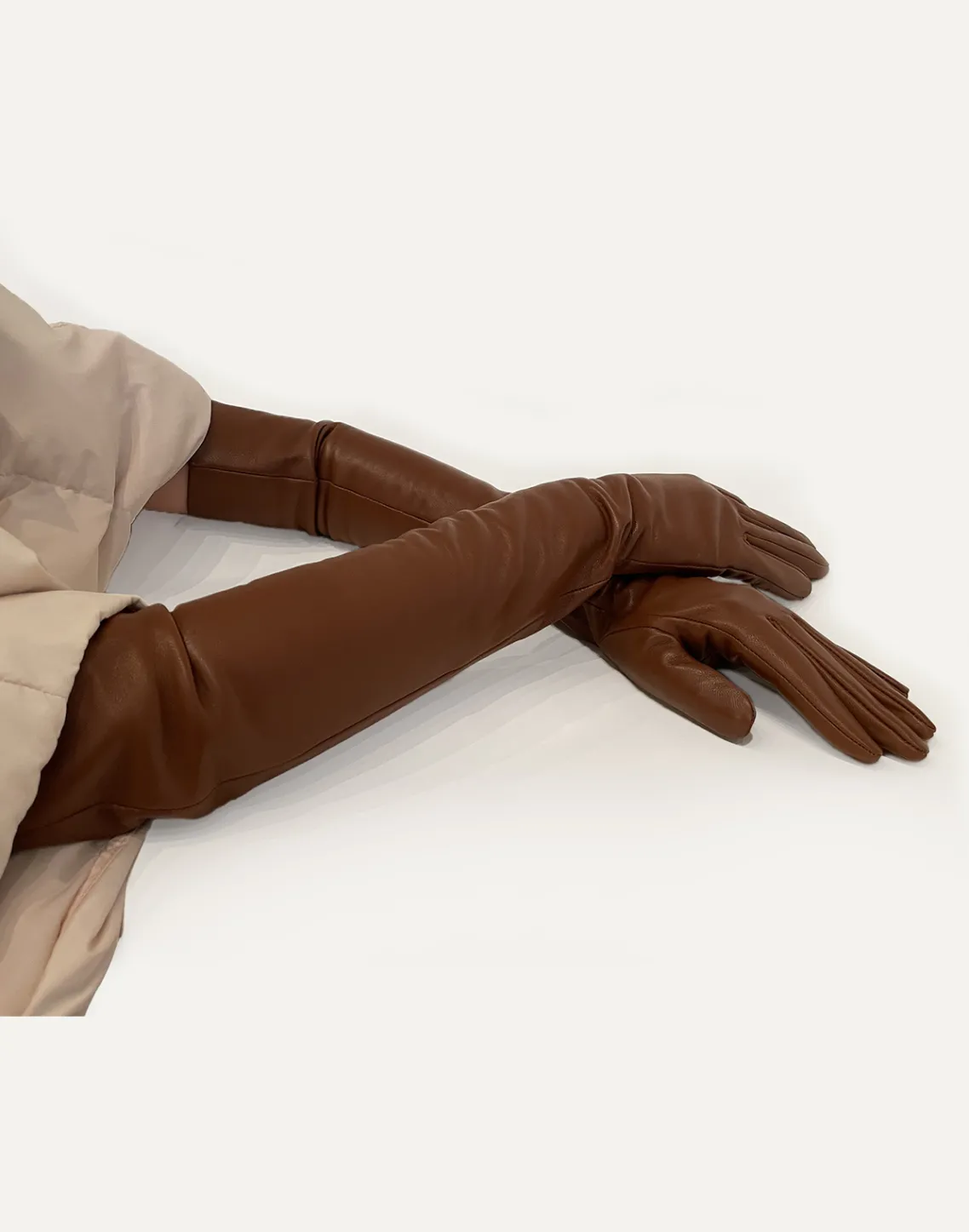 Long brown leather gloves. One size100% LeatherDo not washFinal sale