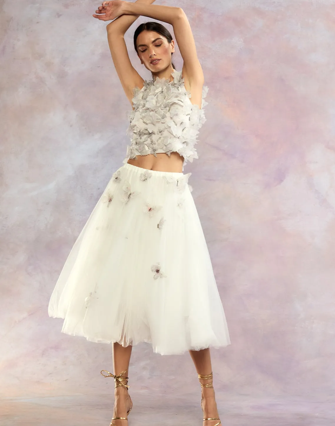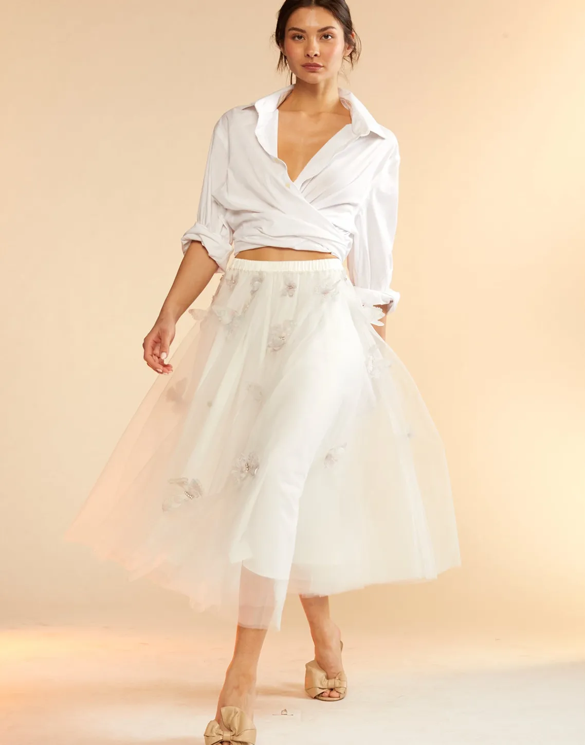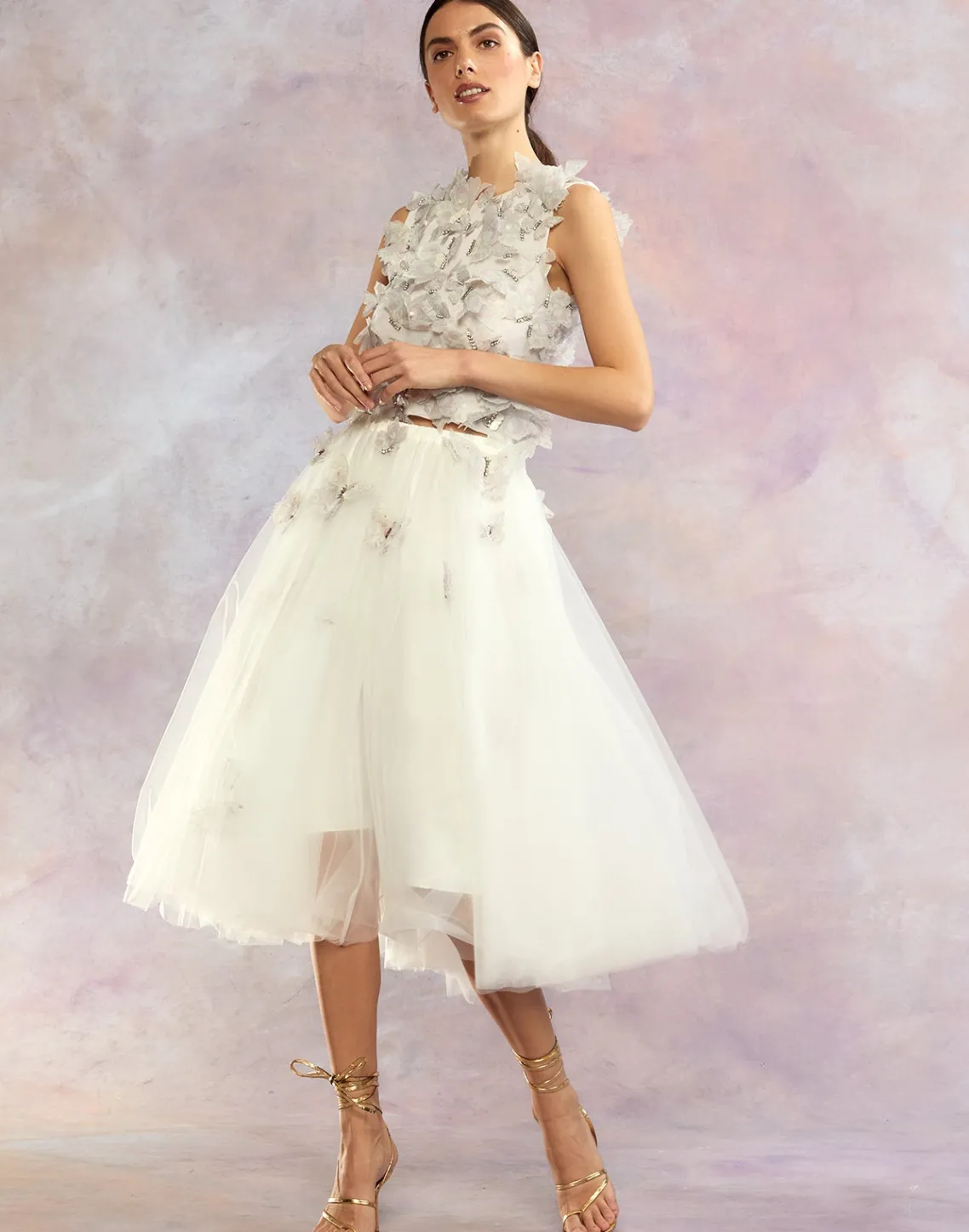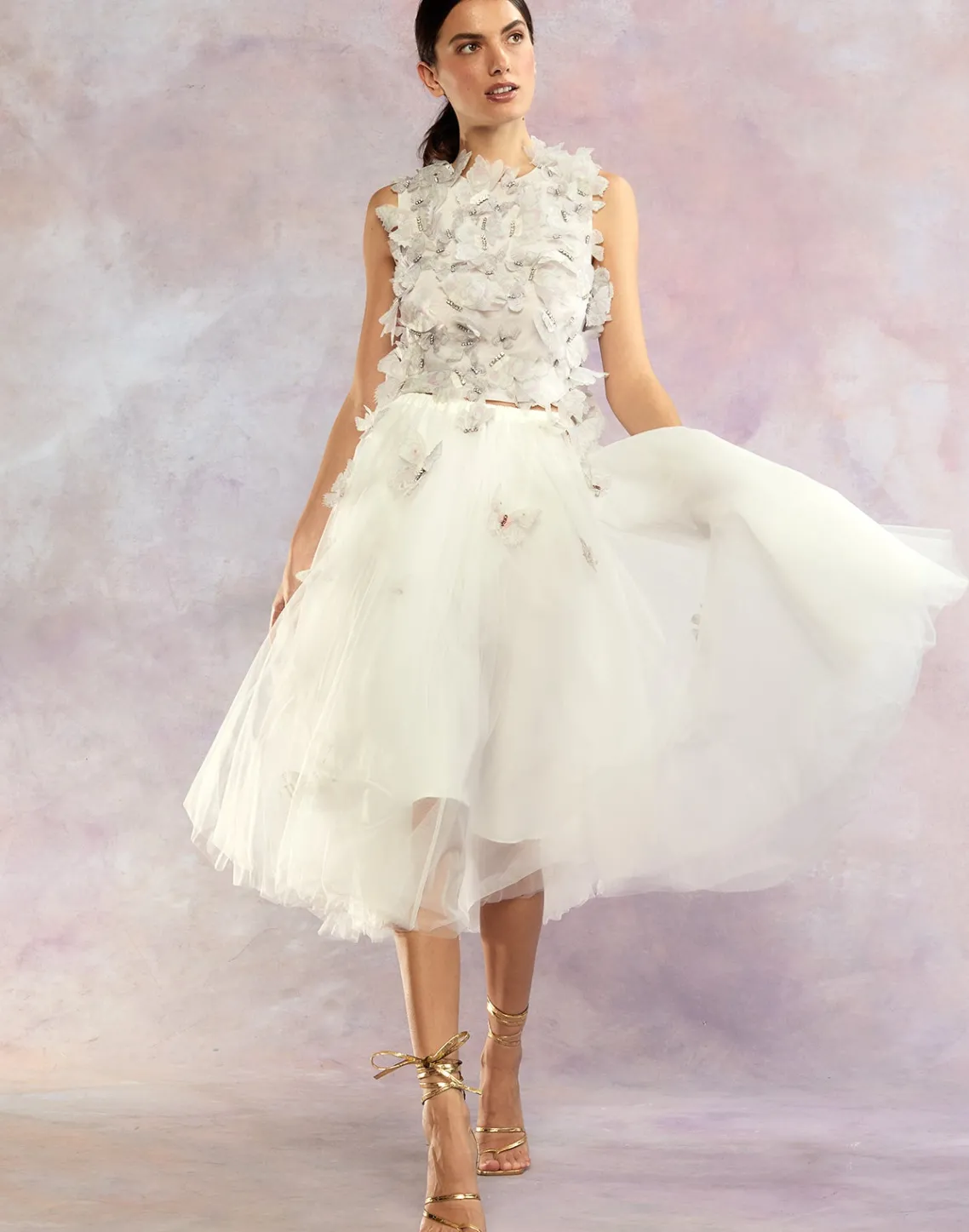 Ballerina style white tulle skirt with cascading butterflies.