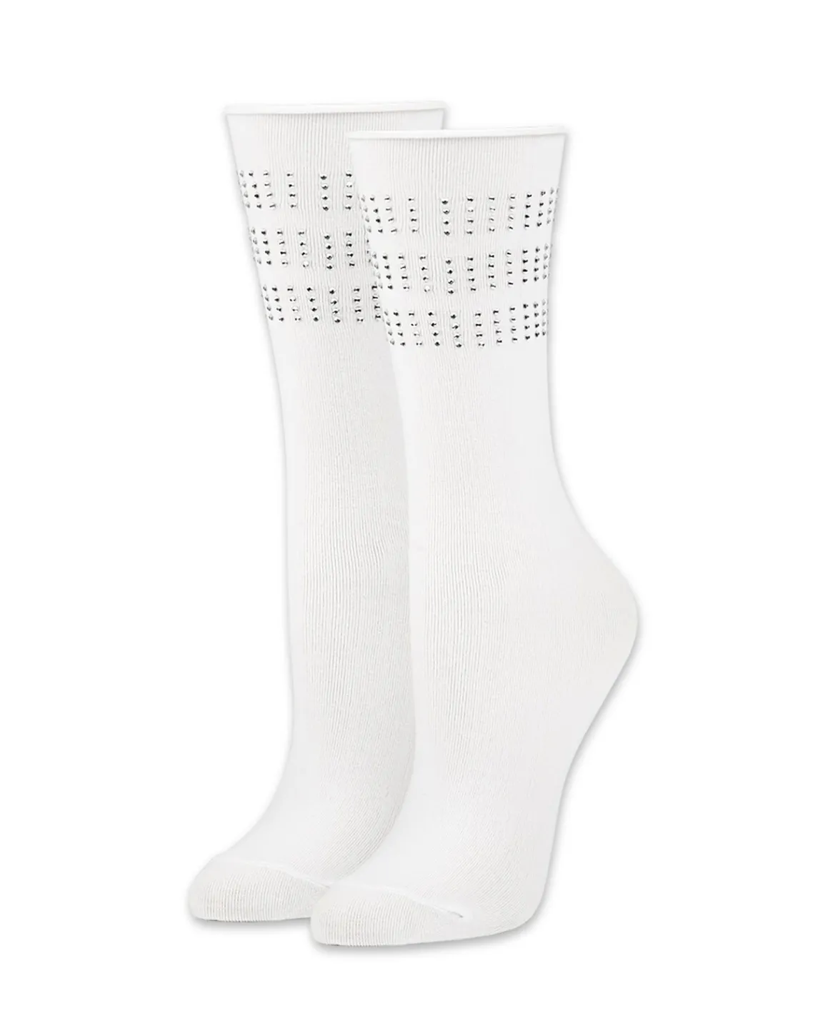 White socks with clear crystals. Pair with your favorite sneakers or heels!