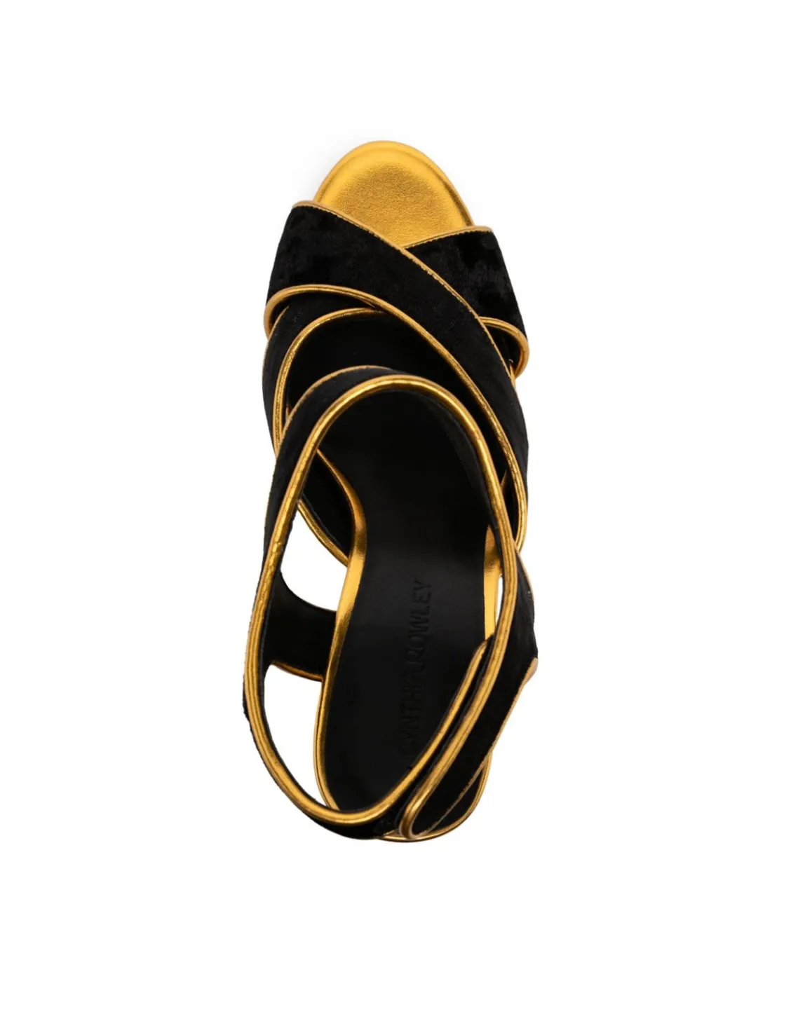 The perfect date night heel! Premium leather with soft velvet Gold trim Gold tip toeVelcro closureBlock heel in velve…