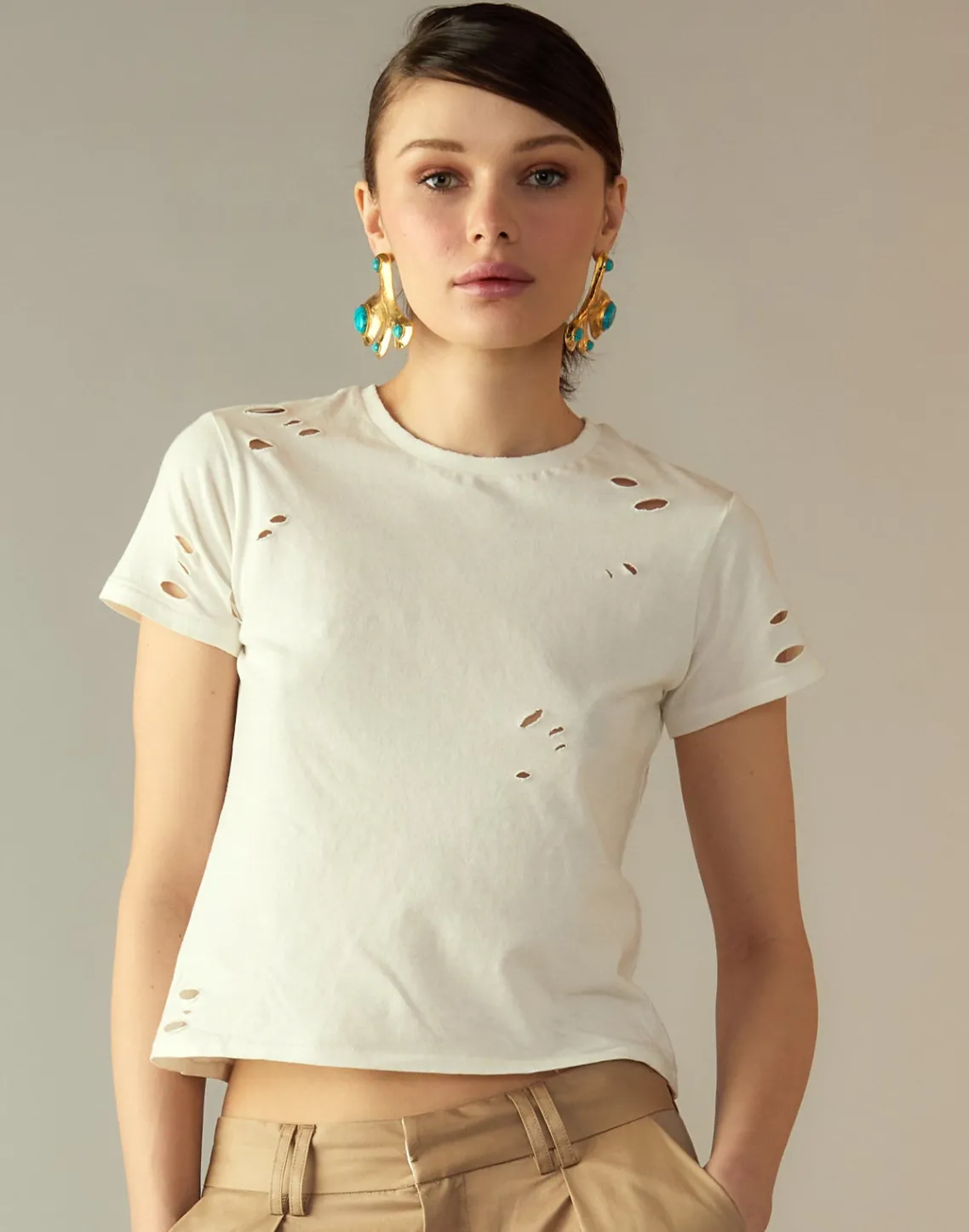 White distressed tee.