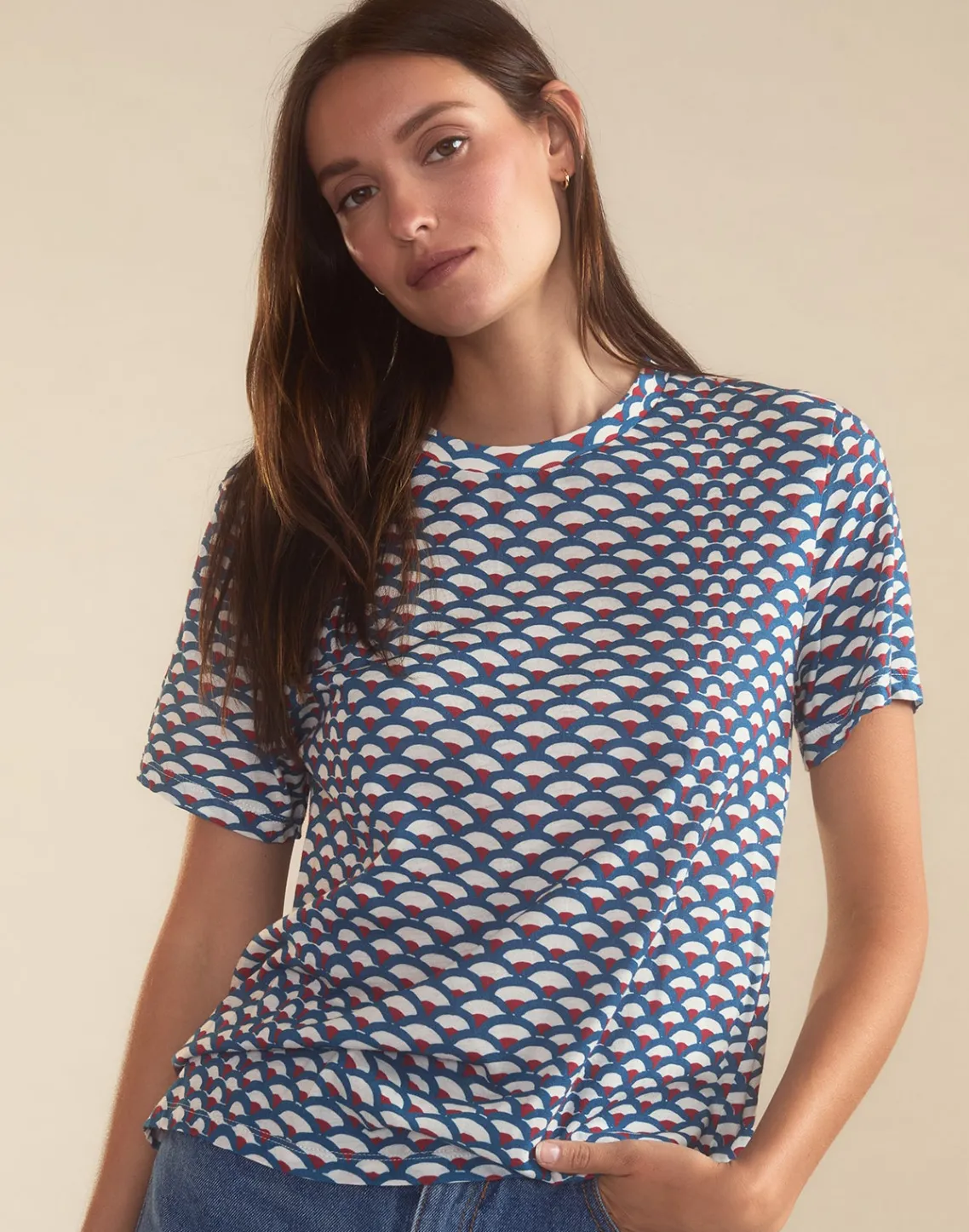 One for every day of the week!Blue, red, and whiteAbstract art deco fan printRegular fitSoft-spun cotton, soft to touc…