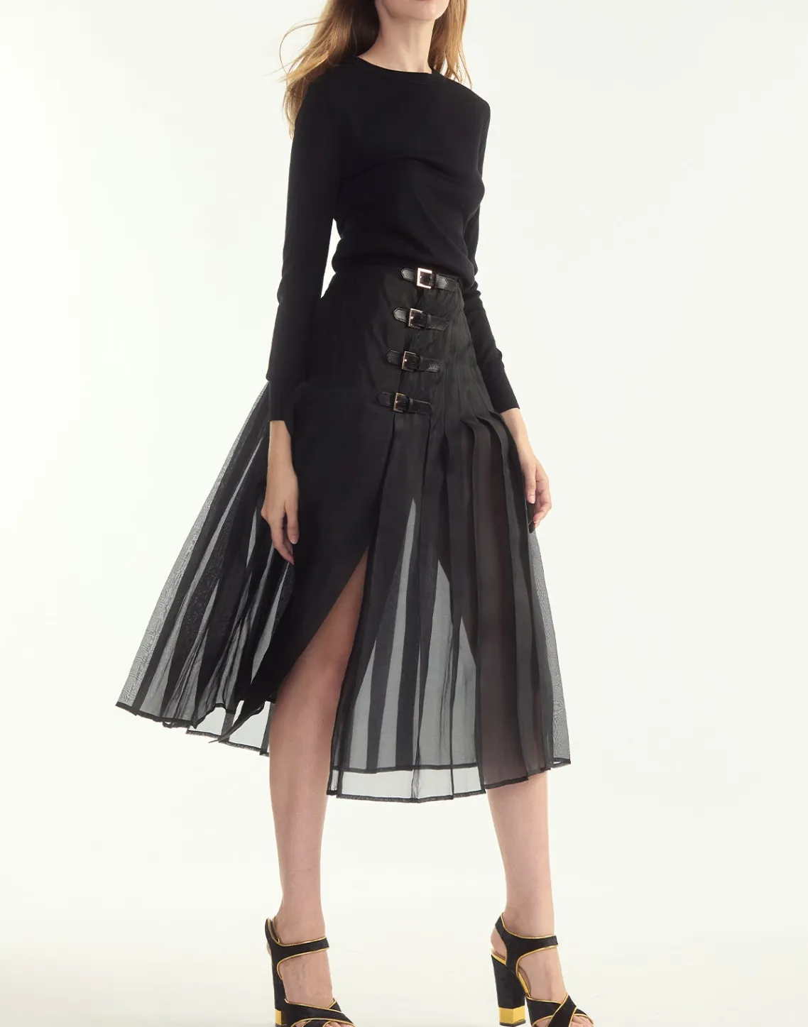 - Semi-sheer silk organza skirt with full coverage organza at the top