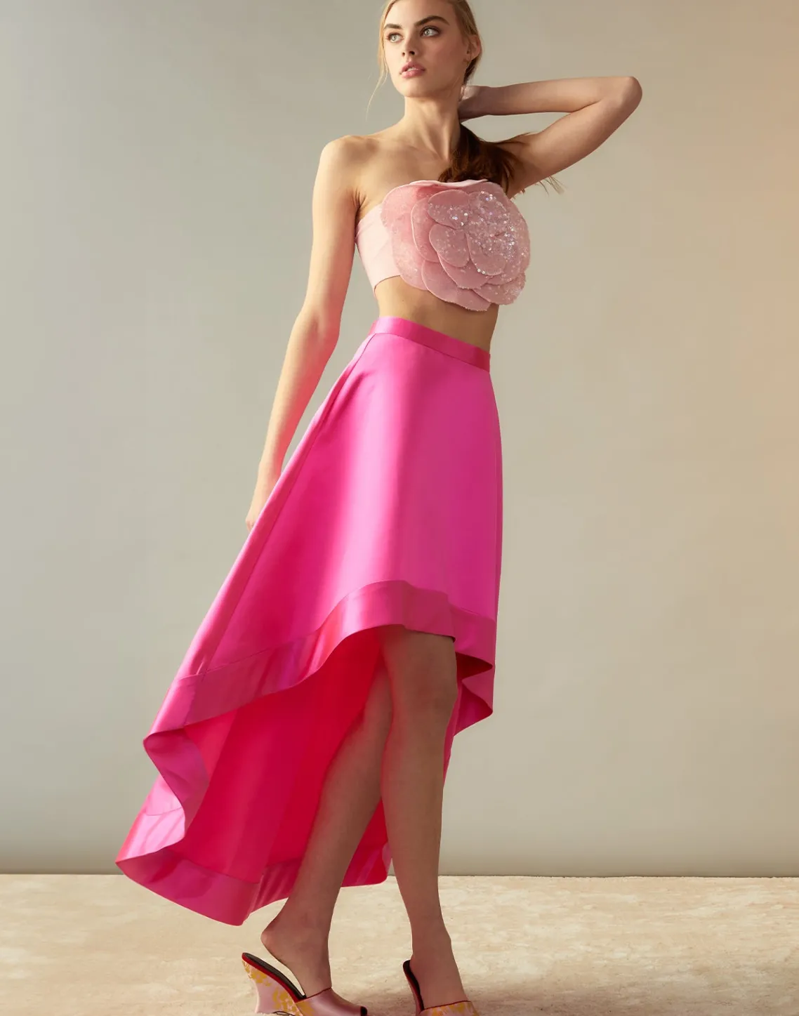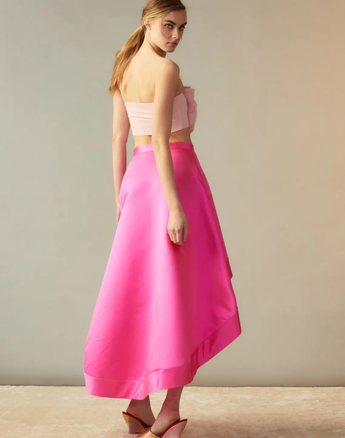 Hot pink satin high low skirt.Hi-low hemSide invisible zipper High waisted Fabric content: 100% polyesterCare instru…