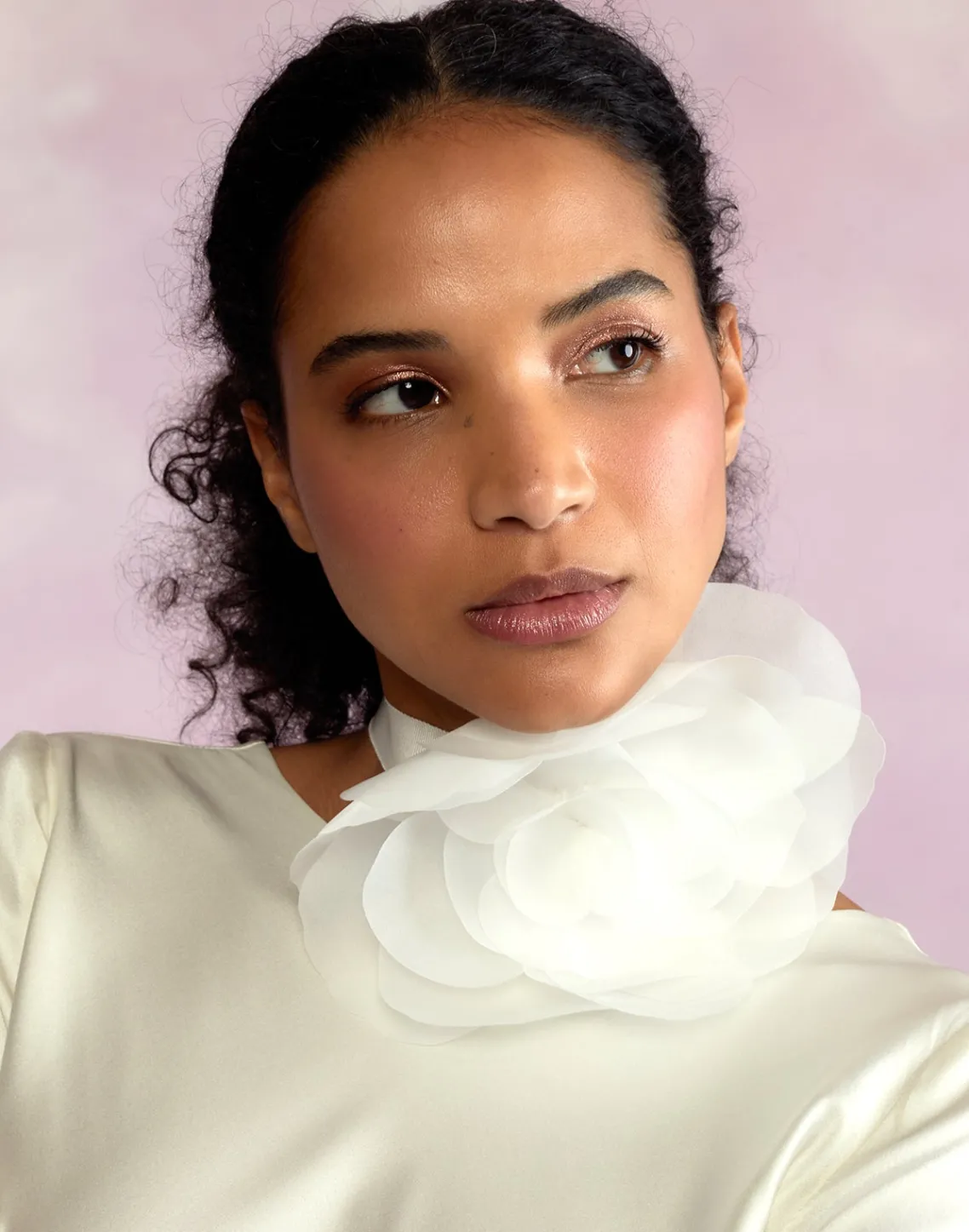 Organza flower can be worn as a belt, hair accessory, or necklace.