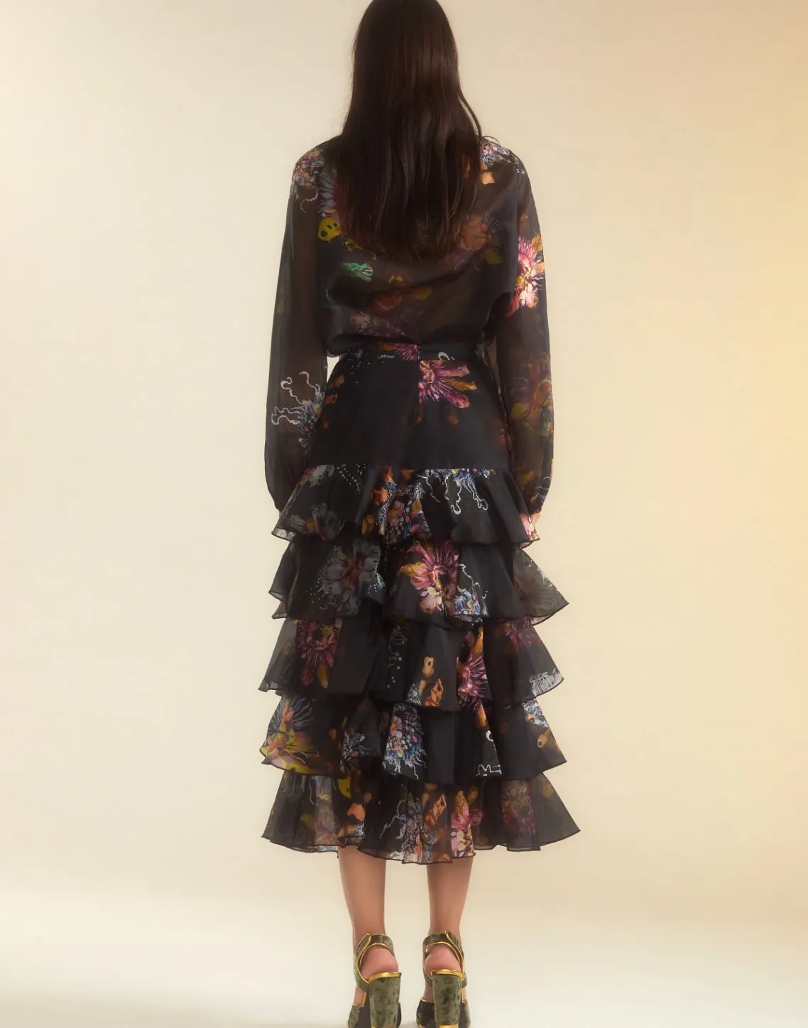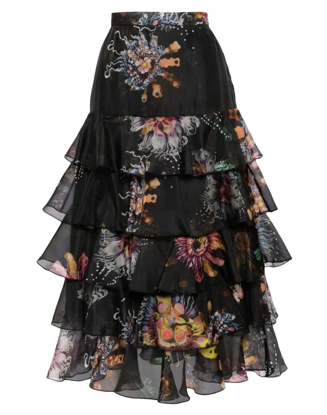Silk organza tiered ruffle skirt