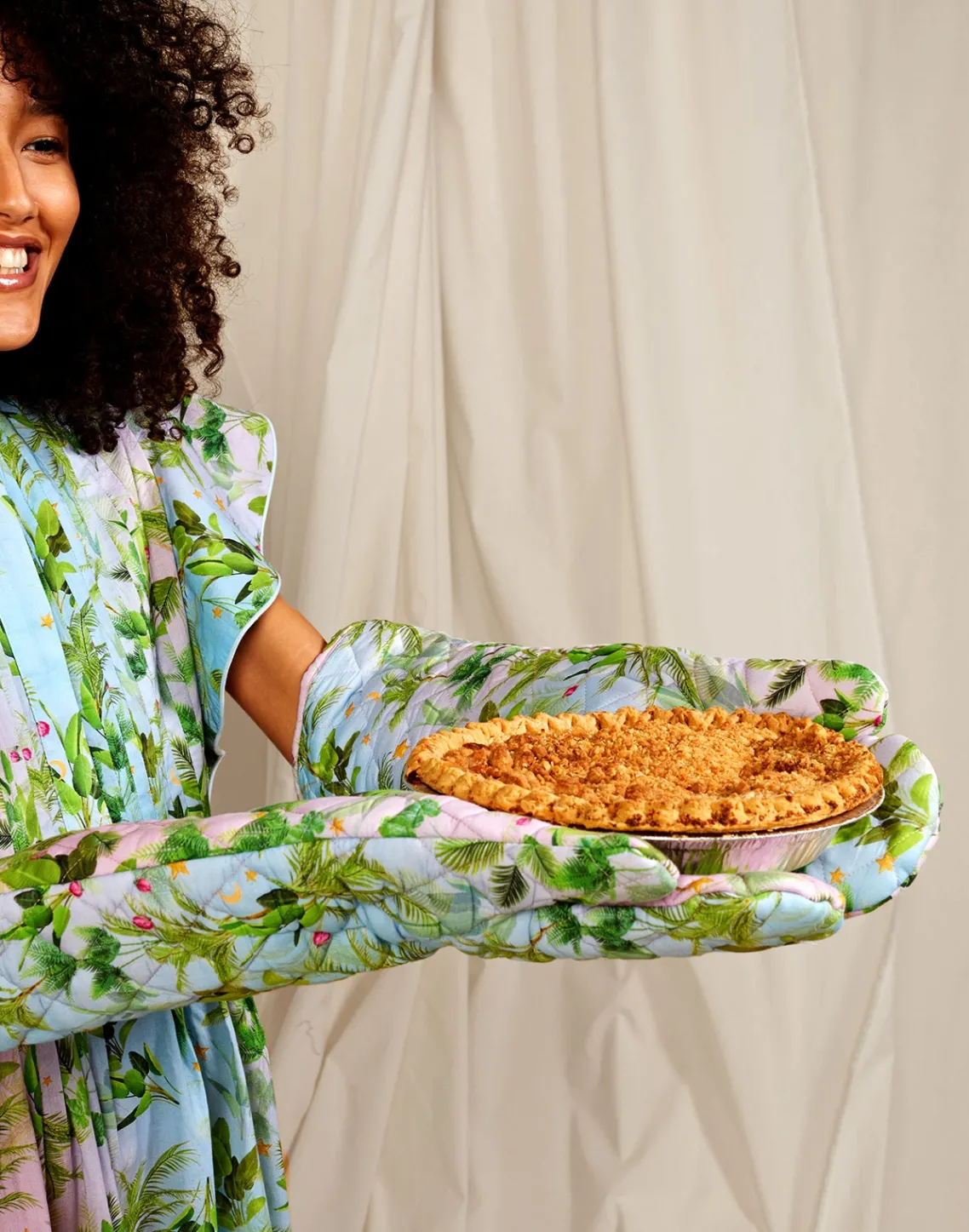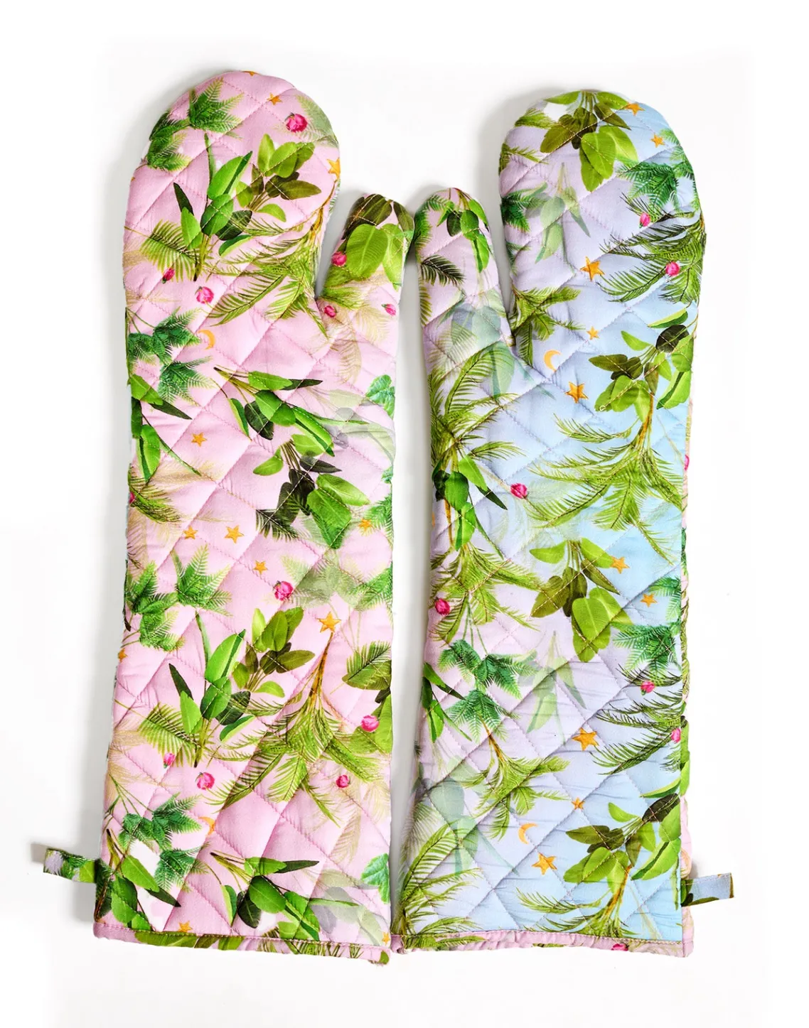Extra long quilted oven mitts.