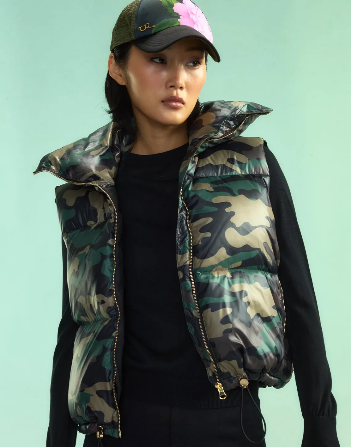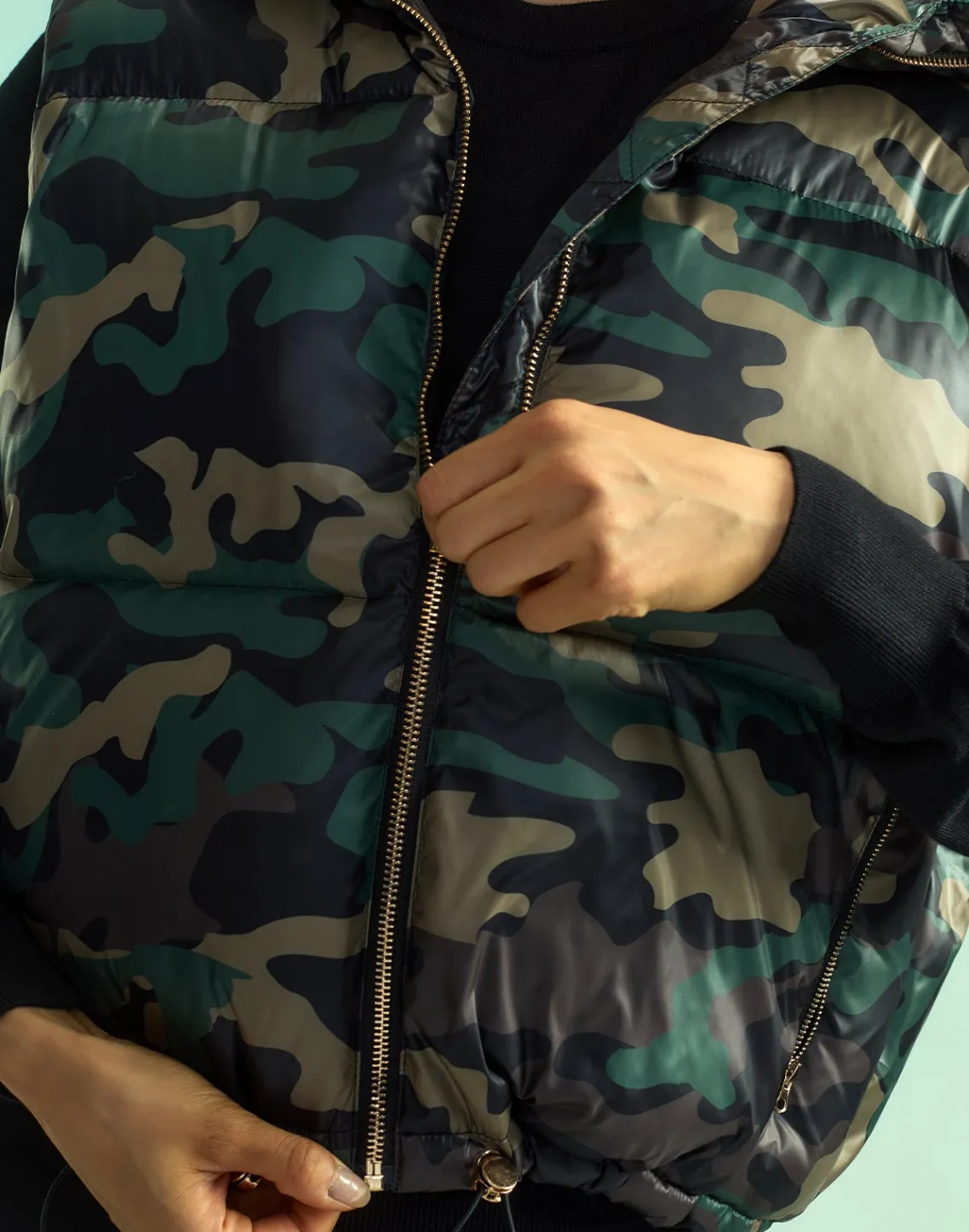 Camouflage down feather puffer vest.